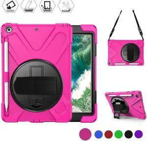 BONAEVER Shockproof Case for iPad 9.7 inch 2017 2018 iPad Air 2 2017 iPad Pro 9.7 2016 with Rotating Stand and Strap Pencil Holder Shoulder Strap