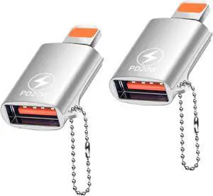 Lightning Male to USB Female OTG Adapter PD 20W Fast Charging Adapter Connector Convertor for iPhone 14 13 iPad U Disk Mouse Keyboard Hubs Silver