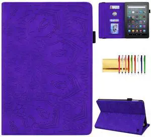 Case for Fire 7" 2022 12th Generation, Techcircle Mandala Embossed PU Leather Folio Stand Soft TPU Back Cover Slim Lightweight Elastic Band Protective Case with Card Slots & Pen Holder, Purple