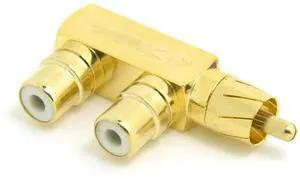 AV Audio Splitter Plug RCA Adapter 1 Male to 2 Female F Connector Gold Plated 90 Degree Angled Type
