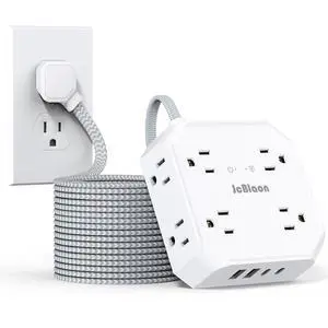 Power Strip Surge Protector, 5Ft Extension Cord, 6 Outlets with 3 USB Ports(1 USB C Outlet), 3-Side Outlet Extender, Wall Mount, Compact for Travel, Home, School, College Dorm Room, and Office