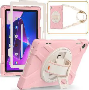 Case for Lenovo Tab M10 3rd Gen 10.1 inch 2022 Model TB-328FU TB-328XU with Pencil Holder, Kickstand, Hand & Shoulder Strap Shockproof Protective Cover Pink