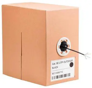 Monoprice 1000ft Cat5e Bulk Bare Copper UTP 24AWG Outdoor Watertape Direct Burial Solid Cable - Black  15396