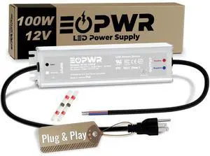 LED Driver 100W Waterproof IP67 Power Supply AC120-277V to 12VDC US 3-Prong Plug Low Voltage Transformer Adapter for Outdoor LED Lighting CE UL TAA (12V 100W)