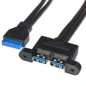 FOR 2 Port USB 3.0 Female Screw Mount Type to Motherboard 20pin Header Cable