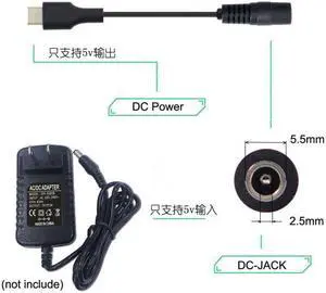 Jimier Cable USB 3.1 Type C USB-C to 5V DC 5.5 2.5mm Power Plug Extension Charge Cable for Cell Phone 25cm