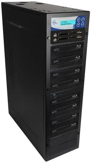 EZ DUPE 1 to 7 Media Mirror Plus Duplicator - Flash (SD / CF / MS / MMC / USB) & Disc (Blu-Ray / DVD / CD) to 1 Media / 7 Disc Copy Copier Multimedia Backup (M1007-SSPBD)