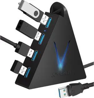 4-Port USB 3.0 Hub, FlyingVHUB USB Hub Tower with 2 ft Extended Cable,USB Splitter for Laptop,PC,PS4,PS5,Xbox,Mouse,Keyboard, Flash Drive, U-Disk (Black)