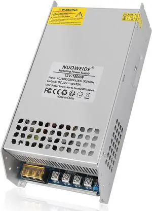 12V 125A 1500W Power Supply Transformer, 110V AC to DC 12V Converter Adapter 125A 1500W SMPS, DC 12V Switching Power Supply for LED Strip Motor Pump CCTV Camera System Car Stereo 3D Printer