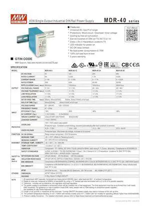 Mean Well MDR-40-12 40W Single Output Industrial DIN Rail Power Supply MDR-40 12V 3.33A