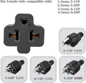 6-15P to 5-15R Power Adapter Travel Plug Adapter,US 3 Prong Plug Adapter 120V to 240V Black Plug Power Converter Electrical Adapter,1-Pack (6-15P to 5-15R, Style-B)