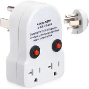 30 Amp to 20 Amp 110V Dryer Distribution Adapter Compatible with NEMA 14-30P to 2X 5-20R/ 5-15R, 4 Prong Dryer Wall Socket to 3 Prong Household Outlet with 20 Amp Circuit Breaker