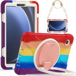 BONAEVER Case for Samsung Galaxy Tab A9 8.7 Inch 2023 SM-X110/SM-X115/SM-117 Rugged Military Grade Shockproof Cover with Rotatable Stand and Strap Shoulder Strap Pencil Holder Rainbow Red