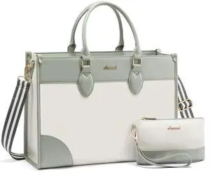 LOVEVOOK Laptop Tote Bag for Women, Laptop Tote Bag Gift with Laptop Compartment, Leather Large Computer Bag with Zipper, Handbag Briefcase with Detachable Accessory, 15.6 Inch Beige