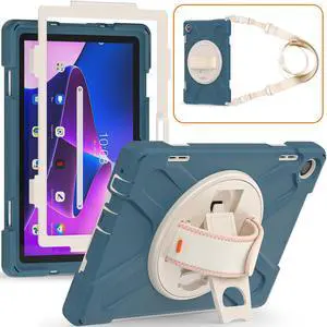 Case for Lenovo Tab M10 3rd Gen 10.1 inch 2022 Model TB-328FU TB-328XU with Pencil Holder, Kickstand, Hand & Shoulder Strap Shockproof Protective Cover Dark Blue