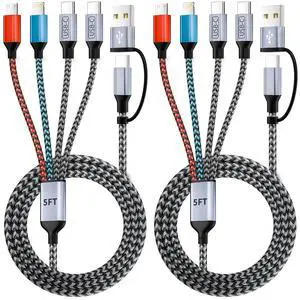 4 in 2 Multi Charging Cable, USB A/C Cable with Dual Type-C/IP/Micro USB, Travel Charger for Multiple Devices, Phone Charger Cord for iPhone 17/16/15/14, Galaxy, Android Tablet Pad (2Pack 5FT)OUT OF STOCK
