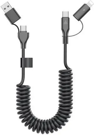 Coiled USB-C and Lightning Cable 2-in-1, 3FT iPhone 17 16 Car Charger Cord, 60W Fast Charging Cable for iPhone 15, Samsung Galaxy Supports Apple CarPlay & Android Auto (Black)- Brand: MTAKYA