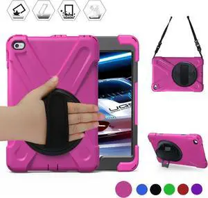 for iPad Mini 4 Case Three Layer Drop Protection Shockpoof Rugged Heavy Duty iPad Mini 4 Protective Case With a 360 Degree Swivel Stand Hand Strap and a Shoulder Strap for iPad Mini 4 Case