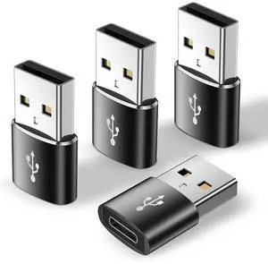 USB C to USB Adapter, USB to Type C Adapter 4Pack, Type C Female to A Male Charger Cable Converter Compatible with Mbook, Notebook, Tablet, Smartphone, Airpods,Galaxy S23 S24 A34 (Black)