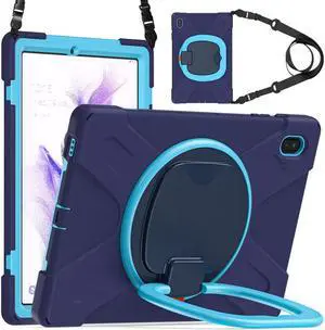 BONAEVER For Galaxy Tab S7 FE 12.4 inch Case 3-Layer Standructure Case with Rotatable Stand and Shoulder/Hand Strap Model: SM-T730 / T733 / T735 / T736 / T738