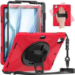 Case for iPad Air 13 inch M4 2026 M3 2025 M2 2024 and iPad Pro 12.9 2022 - 2018 6th/5th/4th/3rd Gen with Built-in Screen Protector, 360° Rotating Stand, Adjustable Shoulder Strap, Pencil Holder Red