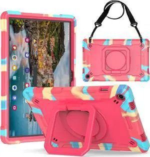 Samsung Galaxy Tab A8 10.5-inch Case (SM-X200/ SM-X205/ SM-X207) - Hybrid Shockproof 360 Rotating Ring Stand Cover Case with Shoulder Straps for Samsung Tab A8 10.5" Tablet - Rainbow/Pink