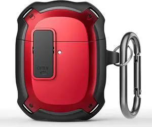 Compatible with Google Pixel Buds A Case Cover [Front LED Visible] Shockproof Protective Case with Keychain Secure Lock Design Hard PC Case Cover for Pixel Buds A 2021 Red