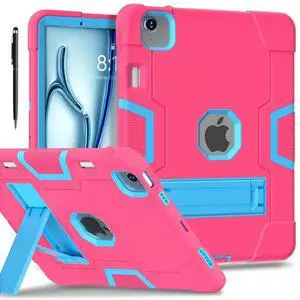 BONAEVER Case for iPad Air 11 inch M4 2026 / M3 2025 / iPad Air 11 M2 2024 with Pencil Holder Heavy Duty Rugged Protective Cover with Kickstand Stylus Pen Rose Red