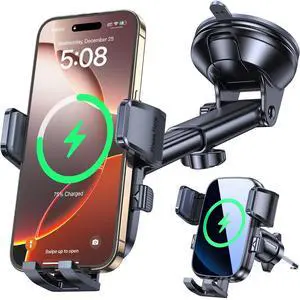 Wireless Car Charger, Fast Charging Phone Holder 3 in 1 Phone Mount Auto Clamping Car Accessories Compatible with iPhone 17 16 15 14 13 12 11 Xs XR, Samsung S23 Ultra S22 S21 S20/S10+ S9+ Note 9