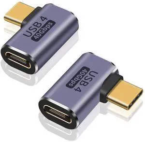 Vszerda USB C 90 Degree Adapter 40Gbps, Up Down Angle 90 Degree USB C Extender Adapter, 8k@60Hz &100W Type C to Type C Extender Thunderbolt 4 Connector for iPad, Galaxy, PC, HUB, 2-Pack
