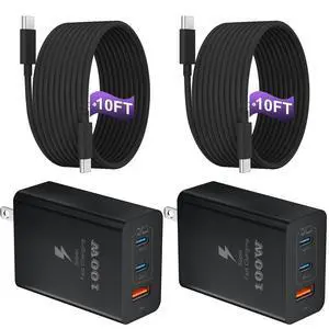 USB C Charger Block 100W, 3-Port GaN Super Fast Phone Charger for Samsung, Type C 65W Laptop Chargers with 10ft USB C Charging Cable for MacBook Pro/Air,iPad Pro, iPhone 17/16, S26 Ultra/S25[2 Pack]