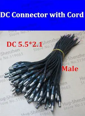 100pcs/lot DC male connector cable DC 5.5*2.1 male connector with 30cm cable for light line monitoring