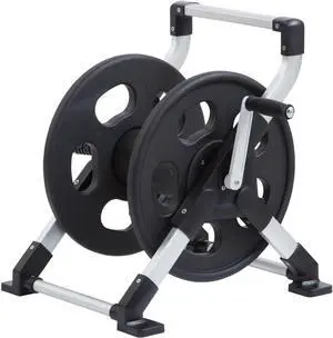 306 Explorer Floor or Wall Mount Hose Reel, Aluminum, Holds 150-feet of 5/8-Inch hose, Silver/Black