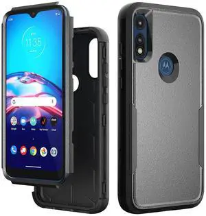 3in1 Hybrid Heavy Duty Defender Rugged Armor Case For MOTOROLA E7 2020 In Black
