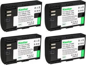 Kastar 4-Pack LP-E6P Rechargeable High-amperage Lithium-ion Battery Replacement for Canon LPE6P Battery, Canon LC-E6 and Canon LC-E6E battery chargers, Canon EOS R5 Mark II Mirrorless Camera