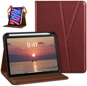 DTTO Rotating Case for iPad Mini 7(A17 Pro) 2024 / iPad Mini 6 2021, 360 Degree Swiveling Premium Leather Folio Stand Cover with Pencil Holder, Burgundy Red