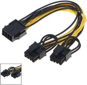 1PC CPU 8-Pin To Double PCI-E 8-Pin (6P+2P) Splitter Cable Power Supply Cord 25cm