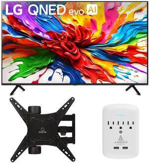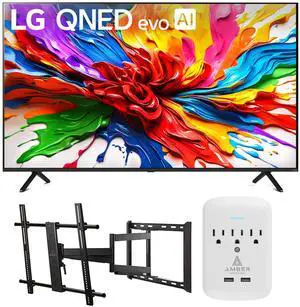 LG 65QNED92AUA 65 Inch 4K QNED Mini LED evo AI Smart TV with a Walts Medium Full Motion Mount and Amber Protection 3-OUTLET-SURGE Surge Protector (2025)