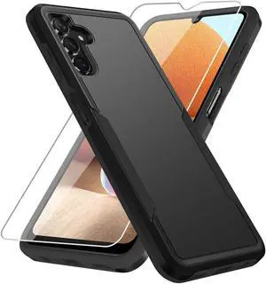 Military Grade TUFF Hybrid Armor Case and Tempered Glass Screen Protector for Samsung Galaxy A14 5G - Black