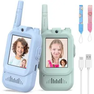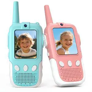 Walkie Talkie for Kids with Video: 2 Pack Rechargeable Toddler Toys with HD Camera & Voice Changer, Long Range Gift Toys for Boy & Girl Age 3-8 for Outdoor Play, Camping (Pink-Blue)