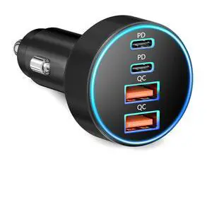 75W Car Charger USB C, 4 Port Super Fast Cigarette Lighter USB Charger, Type C 60W & QC 3.0 Multiport Car Phone Adapter Accessories for iPhone 17/16/15/14/13/12 Pro Samsung S20 S21 S22 S23, Android