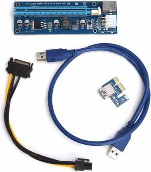 est PCI-Express PCI-E 1X to 16X Riser Card Adapter PCIE Extender + USB3.0 Cable+SATA to 4Pin IDE Molex Power Cord