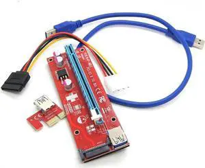 2pcs PCI-E PCI Express Riser Card 1X to 16X USB 3.0 Cable SATA to 4Pin Power Cord Adapter Cards for Bitcion Miner