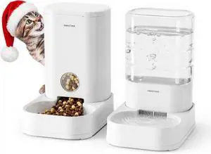 PAWGETHER® 2 Pack Gravity Cat Feeder and Water Dispenser 1 Gallon/3.5L Automatic Cat Feeder and Waterer Dog Water Bowl Dispenser Pet Food Dispenser Puppy Kitten Rabbits