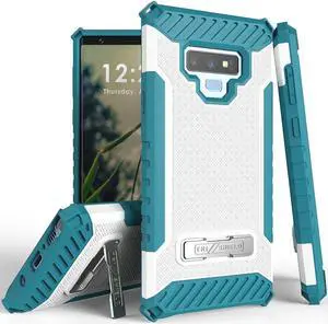 White Turquoise Rugged Case Cover Metal Stand + Strap for Samsung Galaxy Note 9