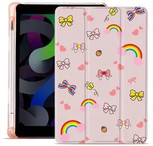 MAYCARI Kawaii Bow Knot and Rainbow Case Compatible with iPad Pro 11 inch Case with Pencil Holder, Auto Sleep/Wake, Pink Cute Girly Cartoon Soft TPU Back Cover for Girls Women