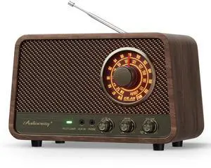 Audiocrazy Vintage Wooden AM FM Bluetooth Radio with 10 Watts Powerful Sound, Retro Bluetooth Speaker Radio with Softly Glowing Dial, Bass Control, Aux Input, Headphone Jack, for Home, Office, Kitchen
