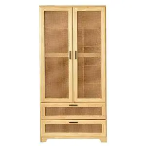 Stylish Pine Wood Closet with Rattan Doors and Two Drawers for Easy Access