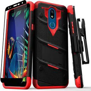 ZIZO BOLT Series LG K40 Case | Military-grade Drop Protection w/ kickstand bundle includes Belt Clip Holster LG Harmony 3 Black Red