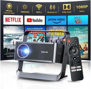 EAZZE D1G Google TV Smart Projector with Foldable Stand, Dolby Audio, NetfIix Official, Auto Focus & Keystone, Native 1080P Movie, Portable Outdoor Mini Projector